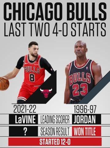 这是公牛自1996-97赛季以来第一次取得4胜0负的战绩,战绩目前领跑全联盟。有老球迷感慨,梦回乔丹时代。1996-97赛季,公牛开局一度打出12连胜,最终取得69胜13负的战绩,夺得总冠军。