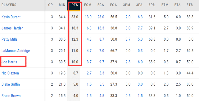 但进入常规赛后,乔哈不仅命中率大幅下滑,而且他的场均得分甚至不如打替补并且只拿底薪老将合同的阿尔德里奇!阿德目前场均11分,还是上一场球队击败费城的绝对功臣。而本赛季年薪589万美元的米尔斯则是场均12.3分,乔哈里斯场均得分只能排在队内第5,这显然和他的薪水有些不匹配。乔哈里斯和哈登一样,都需要尽快做出调整。