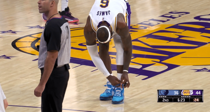 惊险!詹姆斯捂着小腿痛苦倒地,拒绝下场后系紧鞋带继续干太拼