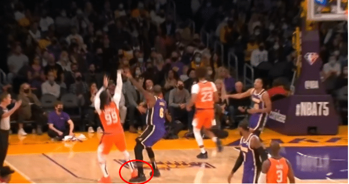 当时,克劳德在侧翼接到队友保罗的传球就跳投三分,而离得最近的詹姆斯马上过来补防,但他的左脚却侵犯了克劳德的圆柱体,垫在了他下落的位置,后者直接踩到了詹姆斯的脚上。随后,裁判马上吹罚了詹姆斯犯规,并给出了一次一级恶意犯规。值得一提的是,联盟已经明确规定不能出现垫脚这种损害球员的行为,所以詹姆斯恐被NBA介入调查这次行为,不排除遭到罚款的处理。