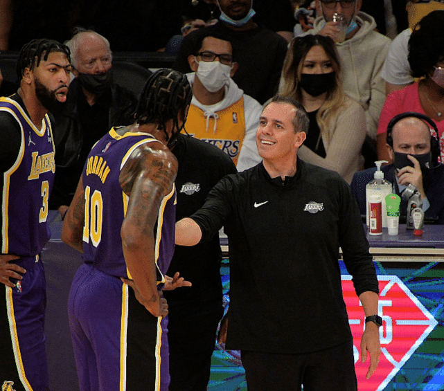 湖人内讧更多细节曝光!浓眉魔兽起身后仍争吵 朗多劝和沃格尔竟面带笑容