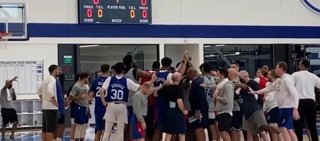 所谓Team Huddle,是指训练结束后,队员们聚在一起将拳头碰在一起,喊一句球队口号。绝大部分NBA球队都有这样的训练习惯,这也是表达全队齐心协力的一种方式。西蒙斯没有这么做,而且他选择尽快离开,也是主动减少自己和队友相处的时间,同时避免和媒体进行接触。