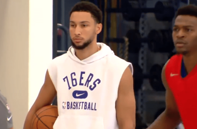 今天,西蒙斯继续参加球队的训练,但跟队记者Jamie Apody报道了两个细节,他似乎仍未真正融入到球队中。Jamie写道:“尽管76人主教练道格-里弗斯说西蒙斯与队友之间的化学反应在一天天变好,但是我可以告诉大家今天西蒙斯并没有将手抬起参与到球队训练结束后的‘Team Huddle’中去,他只是站在外面,然后在训练结束之后立刻离开了球场,此时其他人还在进行投篮训练。”