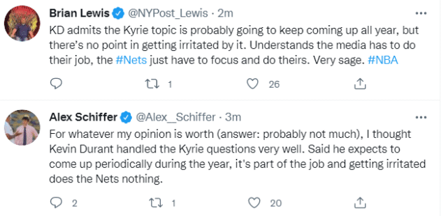 篮网记者们普遍认为杜兰特的回应非常得体,也相当照顾到球队的情绪。虽然他和欧文的私交很深,但既然欧文做出了自己的选择,杜兰特也只能长痛不如短痛,选择和球队一起继续踏上冲冠之路了。
