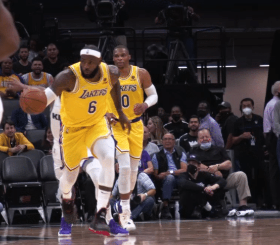 威少上空篮不进!湖人三巨头半场合砍46分仍落后,詹皇杀招太无解