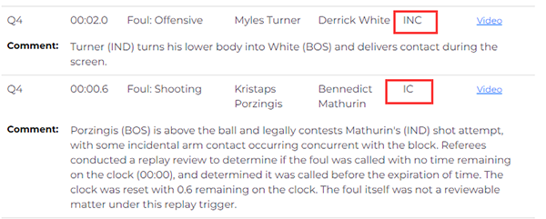 裁判报告还显示,波尔津吉斯合法防守,在盖帽的同时发生了一些偶像的手臂接触,这不构成犯规;裁判回放只是确定比赛时间,在这种回放触发下,犯规本身是不可撤销的。