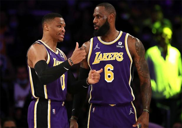 2021年,在詹姆斯和浓眉的招募下,湖人通过一笔5大交易,从奇才得到威少;不过威少与詹姆斯和浓眉之间的化学反应很差,威少在湖人的效果一直难有起色,即使威少被降为替补,这种情况仍旧未改观;最终在2023年交易截止日期前,湖人交易威少,威少被爵士裁掉后加盟快船,威少在快船赢得首发,湖人则是强势崛起并且杀到西部决赛。