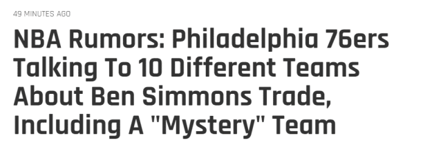 此前有报道称,费城仍想用西蒙斯去交易像利拉德或者比尔这样级别的球星,但目前来看,希望非常渺茫。用 Fischer的话来说,如果用五个步骤来形容两支球队完成交易的过程,那么没有一个谈判的进展超过第一步骤。这也说明了关于西蒙斯的交易谈判仍处于最初级阶段,感兴趣的球队真的不少,但愿意为此付出大量筹码的球队仍未出现。