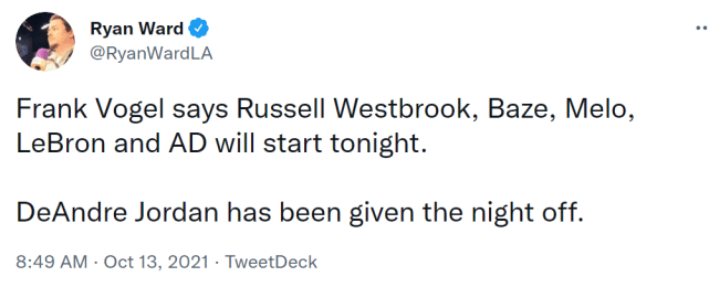 三巨头的合体首秀,湖人选择使用小球阵容,这也是他们在阿里扎受伤前的赛季计划。如今,季前赛四连败的湖人也想看看这样的阵容,能否帮助湖人改善比赛表现,拿下季前赛首胜。