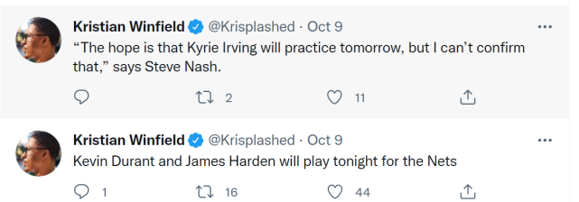 在接受采访时,纳什表示杜兰特和哈登将在对雄鹿的比赛中登场,此前对湖人一战,两位球星都没有上场,这也是他们本赛季第一次为篮网打比赛。