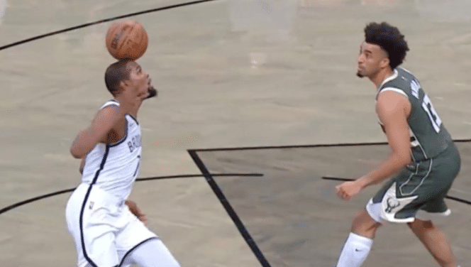 杜兰特首秀!摁帽字母哥哥,搞笑一幕:用头运球后完美助攻