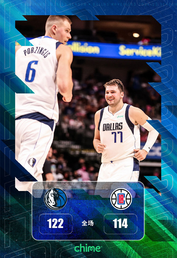 独行侠122-114击沉快船 东契奇14+8+9 铂金15分 肯纳德19分