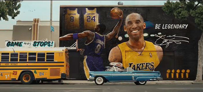 登场的球星都以自己的标志性动作或者特点登场,如拉文的空接暴扣,锡安扣碎篮板,贾巴尔指导诺维茨基等等值得一提的是还出现了科比的壁画,布克开车从旁边经过!老詹也不例外,他标志性的动作就是撒镁粉,这个无论在骑士、热火还是湖人赛前他都会这么做,就算是他的进场仪式吧,提醒自己比赛已经开始了!