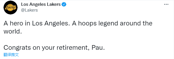 湖人官方晒出加索尔昔日赛场照,配文:洛杉矶的英雄,世界上的篮球传奇,祝贺你退役,保罗。