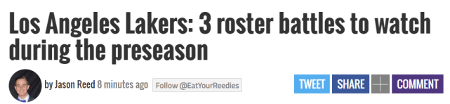 贝兹莫尔和霍顿-塔克之间,也存在某种竞争。lakeshowlife认为,湖人最终的首发阵容很可能是除了三巨头,另外两个位置是霍华德vs小乔丹,蒙克vs艾灵顿。就算有可能都进不了首发,霍顿-塔克和贝兹莫尔之间还是要争夺出场时间,特别是终结阵容里的时间。