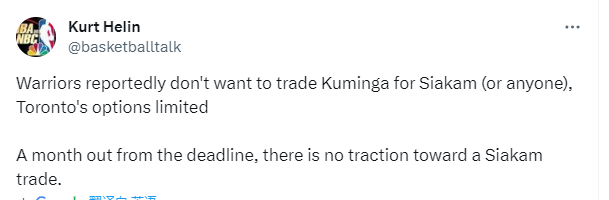 此前猛龙与尼克斯达成大交易,猛龙送走了阿努诺比、阿丘瓦和弗林,换来了巴雷特和奎克利,猛龙继续兜售西亚卡姆,但目前交易难以达成,向勇士索要库明加遭拒绝;此前国王加入西卡争夺战,与猛龙谈判后火速退出交易。