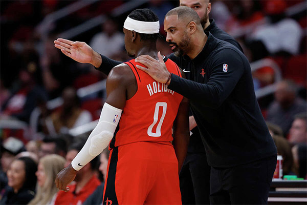 赛季至今,阿隆-霍勒迪为火箭出场32次,场均贡献7分1.9篮板1.8助攻;博班出场5次,场均5分钟可得到2.4分2.4篮板0.8助攻。