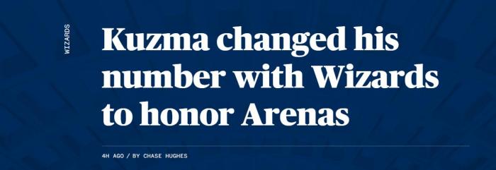 库兹马告诉记者,“我之所以这样做,完全是出于对奇才名宿阿里纳斯的尊重,这是我不穿0号的最大的原因。当初加盟奇才队时,我想到的第一个球员就是阿里纳斯,他的0号对奇才意义重大,对我个人来说也是一种仰望。”