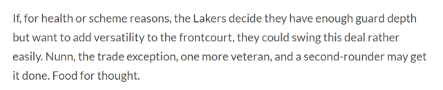 clutchpoints指出湖人现阶段不大可能发生交易,因为新签的球员在3个月内不能被交易,但到了12月中期,如果湖人现有阵容磨合不顺利,佩林卡仍有可能进行交易,他们可以交易的筹码不多,但不意味着没有。