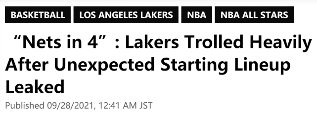 来源:JRS直播网09-29 11:17JRS直播网9月28日讯 ,名记查拉尼亚报道称,浓眉新赛季将成为湖人的首发中锋,其余四位首发预计是詹姆斯、威少、埃灵顿和阿里扎。这一报道引起球迷的热议,美媒称不少球迷吐槽这套阵容,甚至有球迷喊出篮网将在总决赛4-0横扫如此首发的湖人。