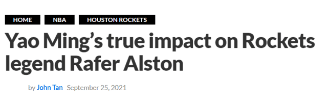 阿尔斯通:姚明让你想变得更出色,球迷在25个街区外就能认出他