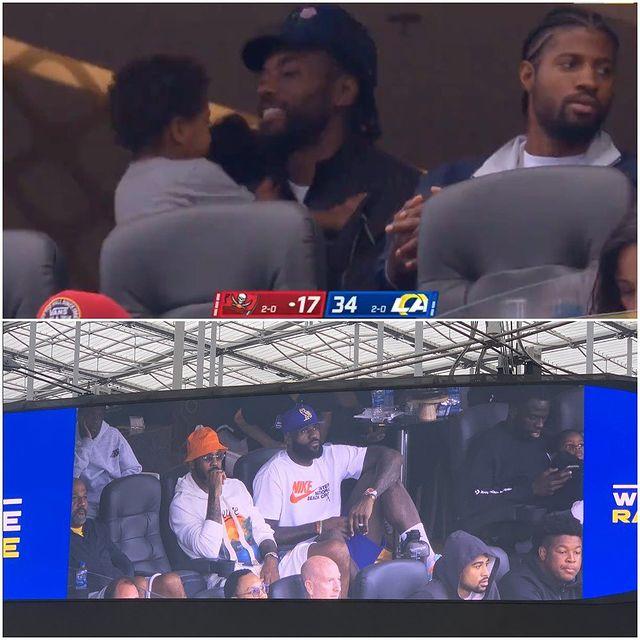 他们也是观看山羊和海盗的比赛,值得一提的是湖人四大巨星詹姆斯、威少、浓眉和安东尼、勇士球星格林以及快船球星小卡和乔治,都来到现场看比赛。