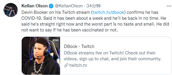 由于确诊新冠,布克已经被隔离起来,隔离期间,布克靠打游戏消磨时间,布克就是在打游戏时透露了自己确诊的消息以及自身的感受;不过布克拒绝透露自己是否接种疫苗。