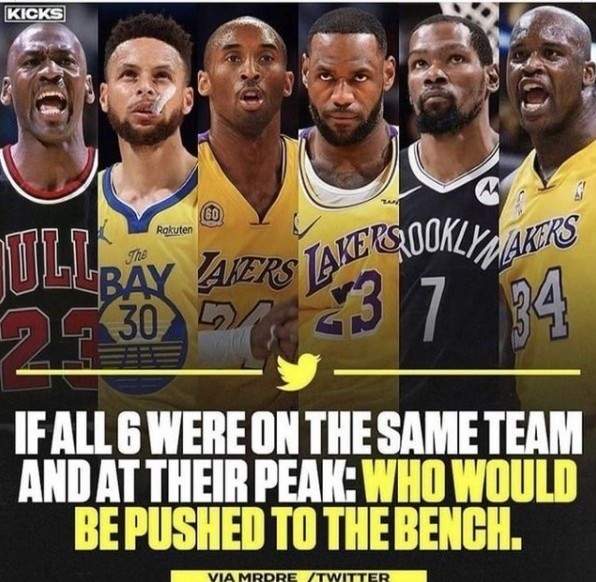 来源:JRS直播网09-25 14:59JRS直播网9月25日讯 在篮球比赛当中,虽然一队球员同一时间只能够上场五人,可是由于比赛的时间较长加上比赛的强度较大,在职业比赛当中替补球员也同样是球队的重要一员。很多时候替补甚至比首发更强,他们得分的分数反而会更多。而近日奥尼尔就晒出了一张图片,上面有乔丹、科比、詹姆斯、杜兰特还有库里和奥尼尔,并且提出了一个问题,假如这些球员都在巅峰时期,你会选谁成为替补球员。