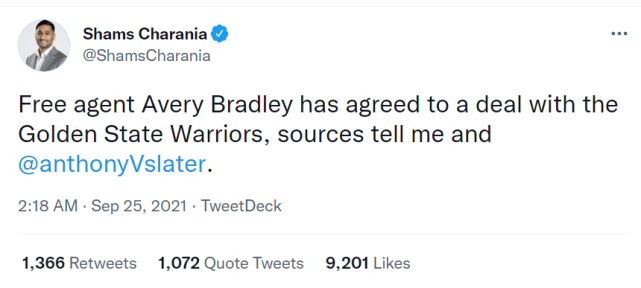 生涯至今,30岁的布拉德利已经效力过7支不同的球队。2016年,他效力凯尔特人时曾入选最佳防守阵容一阵。上赛季,他效力于热火和火箭,一共只打了27场比赛,场均6.4分2.1篮板1.7助攻,三分命中率32.7%。布拉德利能带来不错的外线防守。