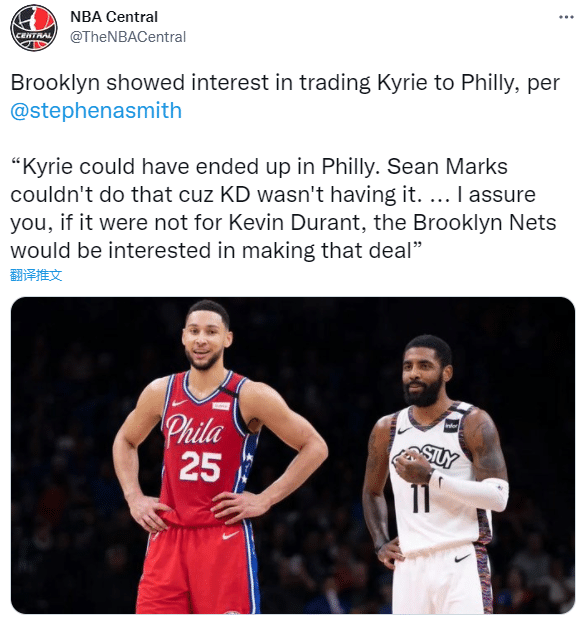 A-史密斯还提到欧文互换西蒙斯的交易流言,名嘴表示:欧文可能会去到费城。肖恩-马克斯不会那么做是因为KD不喜欢。但我向你保证,如果不是KD,那篮网就愿意促成欧文换本西的交易。