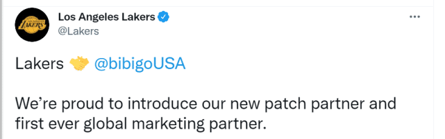 湖人官方晒出了詹姆斯展示新6号球衣的照片,还在训练馆举行新闻发布会,展示新赛季带有该赞助商商标的湖人球衣式样。此外,湖人官方表示bibigo将是他们的首个全球合作伙伴。bibigo标志将出现在湖人球衣的左上角。10月4日,湖人在季前赛对阵篮网,将是这款新球衣的首秀日子。