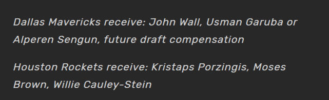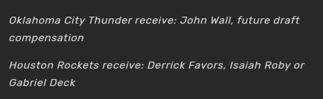 当然,火箭还会评估更多的选择。Basketball News给出的三笔交易方案如下——