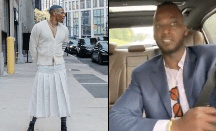 夸梅布朗谈论此前威少身着“奇装异服”的装扮表示:这不是他第一次穿裙子了。他一直喜欢穿裙子,还有那些**奇装异服......就因为这个黑*跳得挺高,会打篮球。我长这么大以来,我从未见过其他黑*或其他男性穿裙子和***靴子上街。我不会尊重这样的人,我不认可这样的人是异性恋。如果你是同性恋,很好,我***根本不会理你。但是你说你是异性恋男人,结果你干出这样的事,那我***,这就是我的看法。