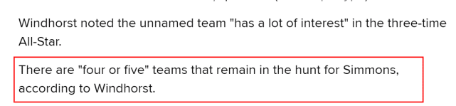 西蒙斯交易最新进展!至少一队已向费城报价 仍有四五支队想要他