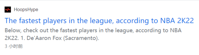 来源:JRS直播网09-14 09:47JRS直播网9月14日讯谁是NBA现役速度最快的球员?北京时间9月14日,美媒公布了2K22的球员速度值,并进行排名。排名的依据是游戏中的Speed(速度)和Speed with the ball(持球速度)的平均值。美媒列出了前20位的排名,福克斯第一,威少第二,詹姆斯和多位球员并列在第20位。
