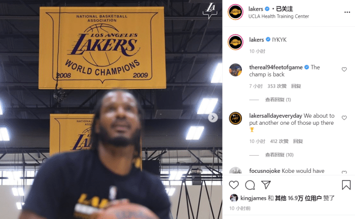 来源:JRS直播网09-10 15:01JRS直播网9月10日讯 ,湖人官方今天在社媒上晒出了一张阿里扎的训练图,而阿里扎背后上空挂着的正是紫金军团09年的冠军旗帜。湖人官推配文写到:懂的都懂!值得一提的是,詹姆斯和霍华德都点赞了这条动态,很多球迷表示对此爷青回!