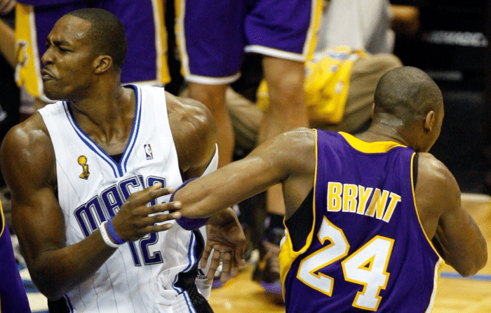 而在当年的东部决赛中,霍华德率领的魔术4比2战胜了詹姆斯的骑士队,魔兽直接阻止了23号和24号的相遇!时至今日,这仍然是很多球迷和媒体心中的一大遗憾!09年总决赛的对决,湖人4比2拿下魔术成功问鼎总冠军,科比也没有悬念荣膺FMVP。如今,除了科比,当年分区决赛的另外3大巨星也都披上了紫金战袍,阿里扎时隔12年回到梦实现的地方。