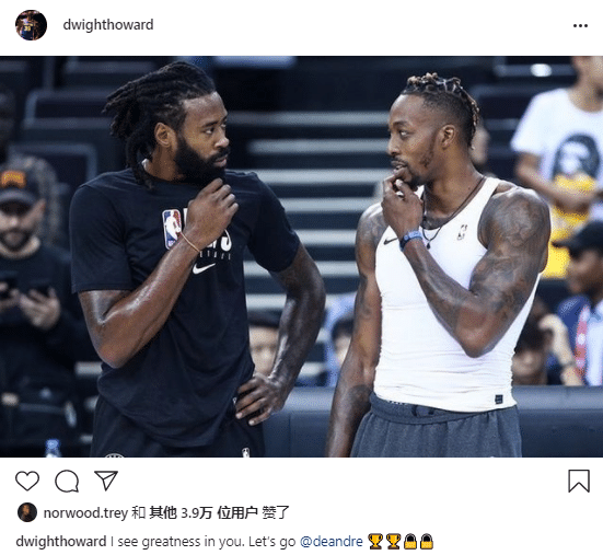此前霍华德已经更新动态,晒两人昔日赛场照,欢迎小乔丹加盟湖人。