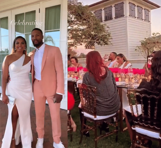 31岁的利拉德在豪华酒店里举办婚礼,宴请亲朋好友,CJ-麦科勒姆、德罗赞等人都是盛装出席,为利指导贺喜;在结婚现场,利拉德身穿白色礼服,他的妻子凯拉则是身穿婚纱,两人当众跳舞嗨起来,还有其他好友也跳舞助兴;值得一提的是,利拉德婚礼现场的地板上撒满了美金。