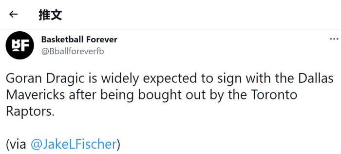 曝德拉季奇预计会被猛龙买断!欲加盟独行侠联手老乡东契奇