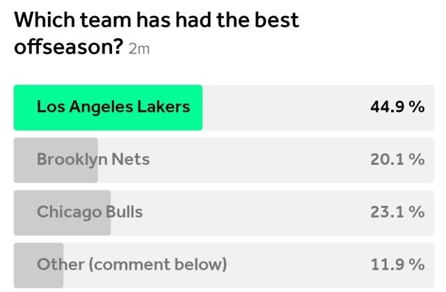和湖人一样,篮网也是一顿操作猛如虎。那么在球迷眼中,湖人和篮网,谁的休赛期运作更出色呢?
