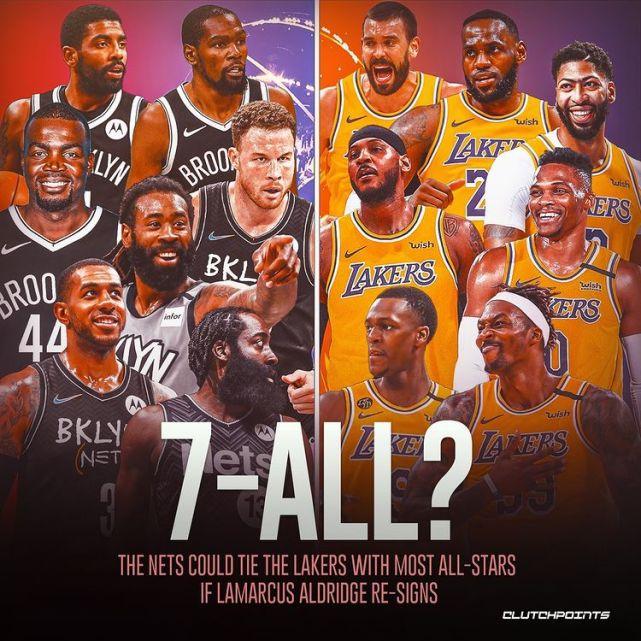 此前,篮网已经和自由球员米尔萨普达成签约协议,如果他们再签回阿德,纸面上他们将有7位全明星。美媒clutchpoints第一时间制作效果图,展示篮网和湖人同时拥有7位全明星对抗的画面。