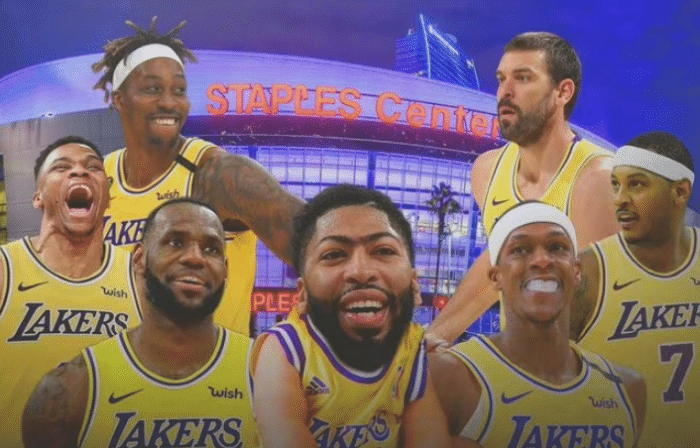 先看看湖人的阵容,已经够豪华了,顶配三巨头詹姆斯+浓眉+威少,三大巨星都还在巅峰,而安东尼,霍华德,隆多,阿里扎,艾灵顿都是NBA成名老将,尤其是甜瓜和魔兽,他们的表现可能决定了湖人能达到了高度,会是球队重要轮换。