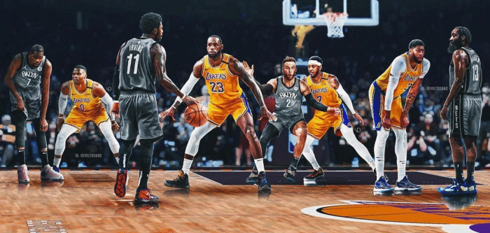 湖人签下隆多,篮网签下米尔萨普,还有潜在加盟的阿尔德里奇,两队都组成了7星阵容。湖人的核心轮换包括詹姆斯,戴维斯,威少,安东尼,霍华德,小加索尔,隆多等,巅峰时期,这些球星都是联盟顶级球星,多次入选全明星。