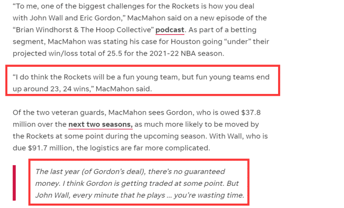 名记预测火箭新赛季至多24胜:沃尔上场的每一分钟都在浪费时间