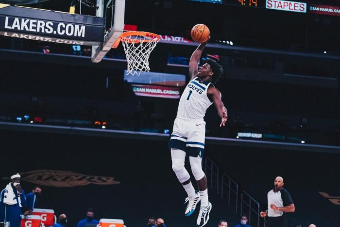 2021年3月19日,森林狼队123-119战胜菲尼克斯太阳队,安东尼·爱德华兹出战38分钟,31投15中,其中三分球13投4中,罚球13投8中,得到42分、7篮板、3助攻和2抢断,刷新个人职业生涯单场新高。作为一名二号位球员,他的身体条件、运动能力很出色,曾上演惊天隔扣,控运基本功很出色!