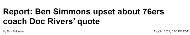 来源:JRS直播网09-01 10:02JRS直播网讯 北京时间9月1日,西蒙斯已经告知76人管理层,自己不愿意再为这支球队效力。他不会前往训练营报到,西蒙斯和76人的关系正式宣告破裂。跟队记者Keith Pompey爆出西蒙斯如此决定的真因,上赛季主教练里弗斯的言论,让这位全明星后卫感到沮丧。