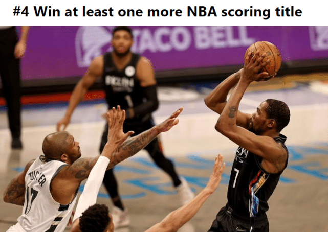 条件5是类似于无形资产,而条件4却是一个可以争取的明确目标。再拿至少一次得分王,可以明显提升杜兰特的履历。首先,这意味着他打出了一个健康稳定的赛季,会进入常规赛MVP的讨论范围,另外,那将是他生涯的第5个得分王,让他成为历史上第3位达到这一高度的球员,仅次于乔丹和张伯伦。
