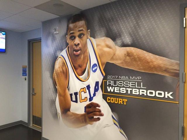 威少对UCLA很有感情,2015年,他成为了校史上给球队捐款金额最大的篮球运动员。为了向威少致意,UCLA的训练馆以拉塞尔-威斯布鲁克的名字命名。2018年10月,威少还带着雷霆队友们一起在这座球馆里训练。