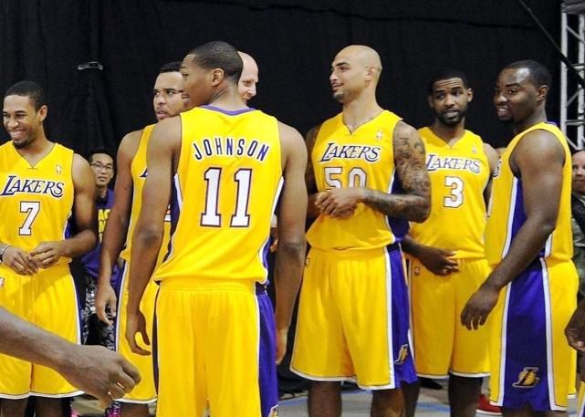 洛杉矶媒体LakersDaily就晒出了8年前(2013-14赛季)的湖人旧照,并配文写道:“黑暗时光。”照片上的这些湖人球员,可能有些球迷都感到陌生。他们包括11号韦斯利-约翰逊、7号亨利、3号肖恩-威廉姆斯、50号萨克雷、9号卡曼等人。那一年,科比只打了6场比赛,队内的得分王是尼克-杨(场均17.9分)。湖人27胜55负,最终在西部排名倒数第二,无缘季后赛。